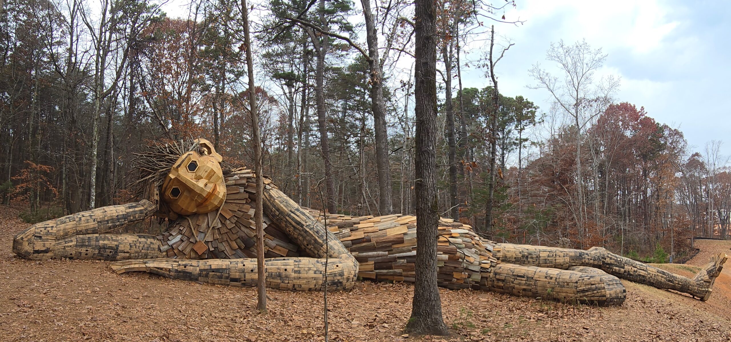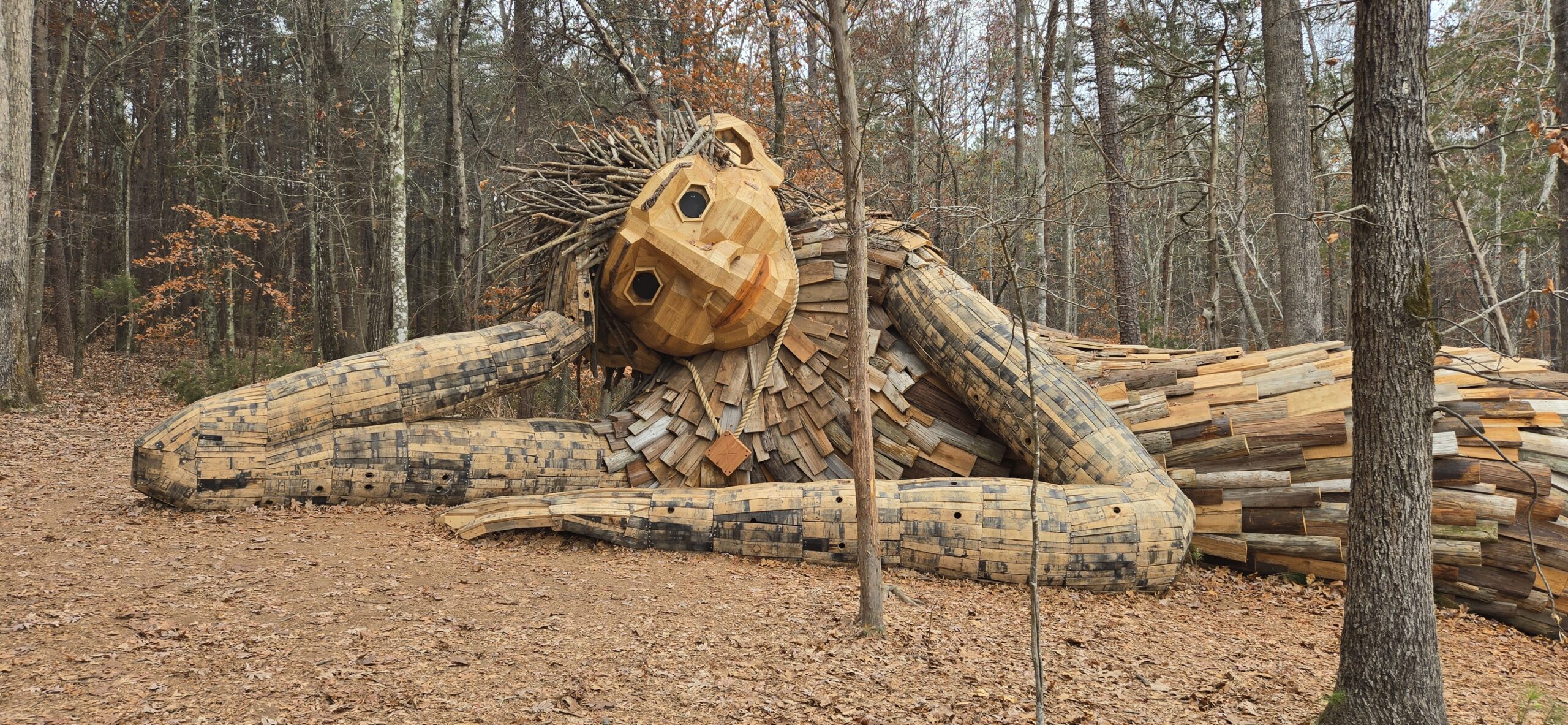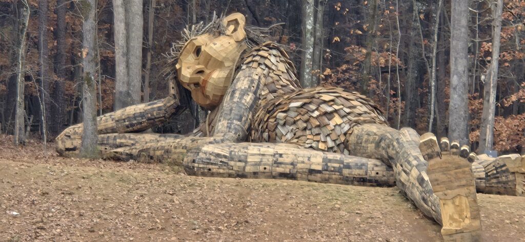 A Troll sculpture by Thomas Dambo in the Charlotte River District