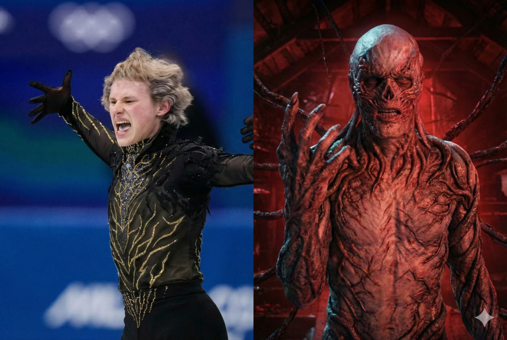 At the previous Olympic games, people compared Tara Lapinski and Johnny Weir with Caesar Flickerman and Claudius Templesmith. This year, we have Ilia Malinin ⛸️ compared with Vecna from Stranger Things.